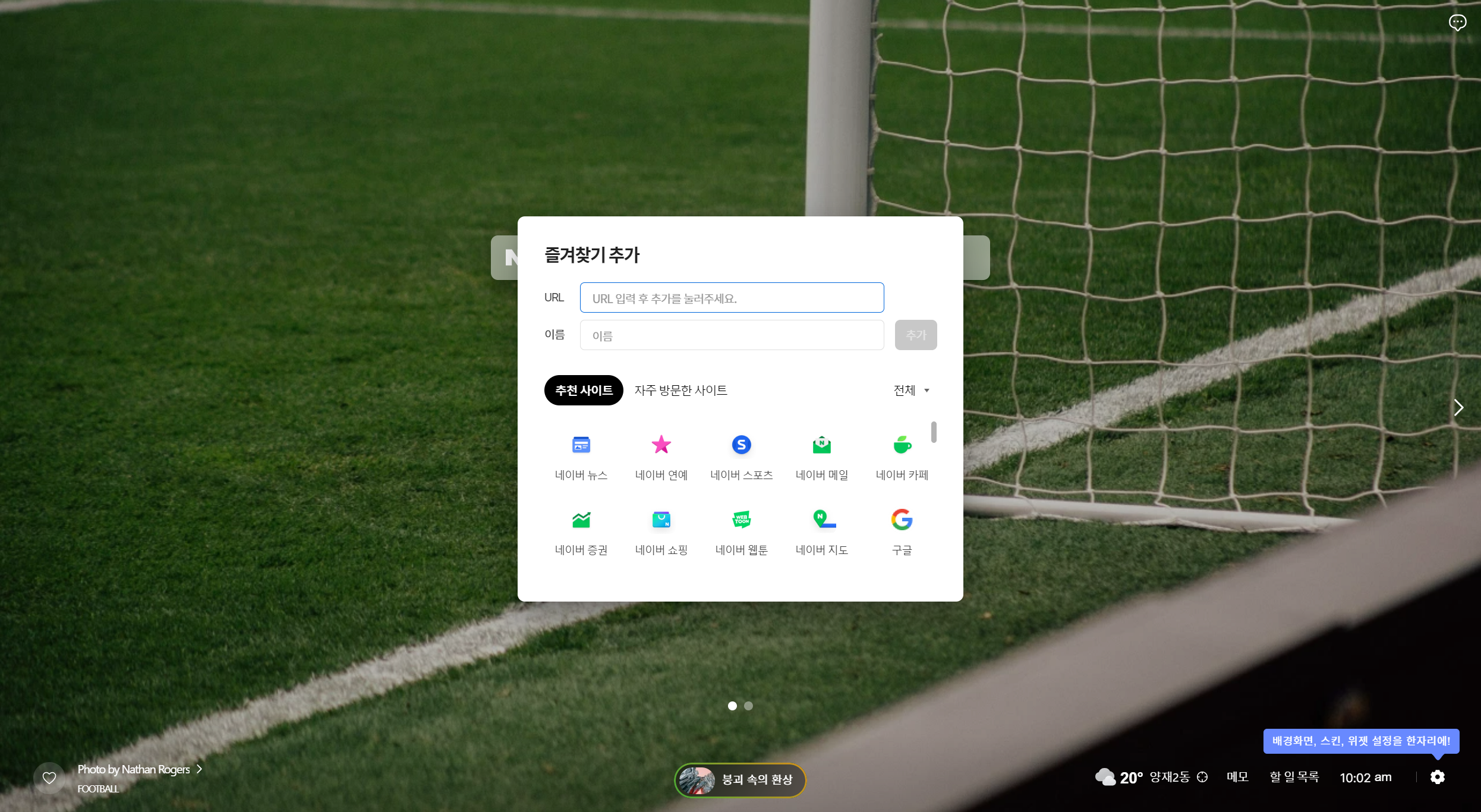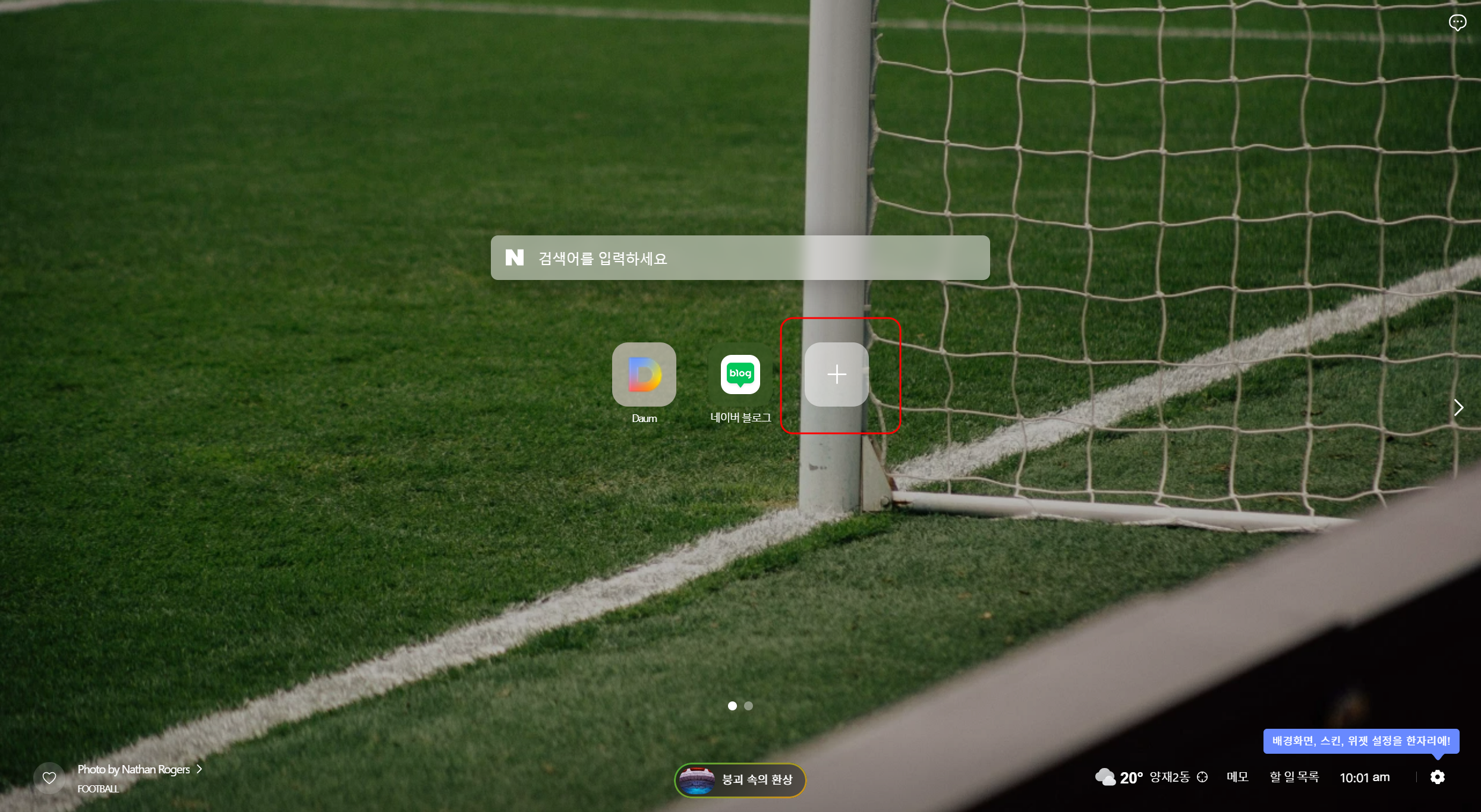 크롬과 유사한 절차로, 브라우저 "+" 버튼을 클릭하면 즐겨찾기 추가 버튼이 나오면 URL에 "daum.net" 입력 후 이름에는 다음 또는 카카오메일 등 이름을 입력합니다.