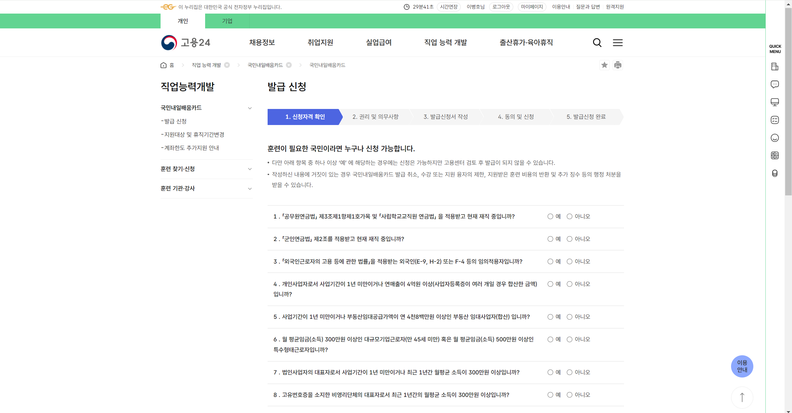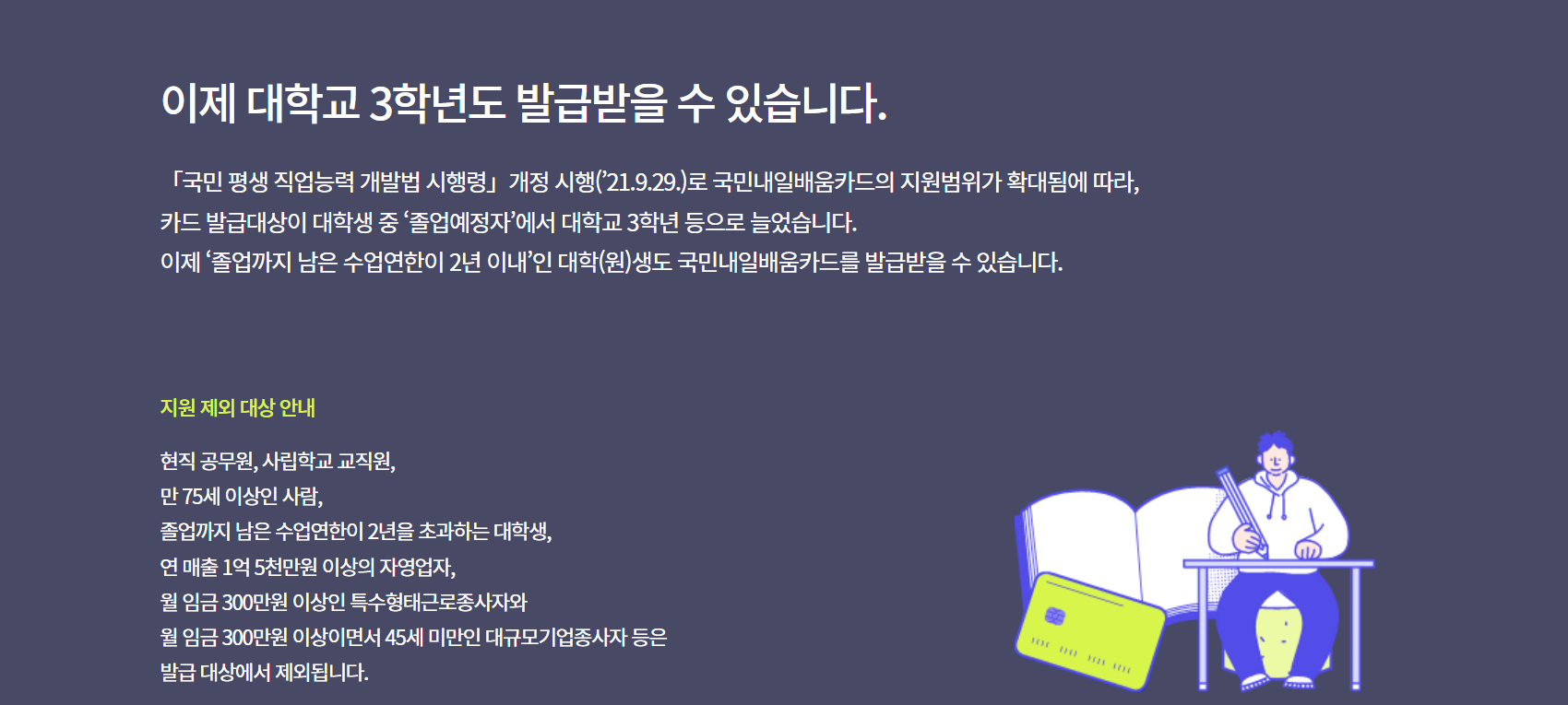 이러한 지원 제외 대상자에 해당하지 않으면 국민내일배움카드 신청이 가능합니다.
